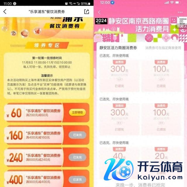 本年11月运转,浦东新区和静安区先后运转披发区级破钞券。其中,“乐享浦东”餐饮破钞券最高券面额度为满900元减400元,而静安区披发了涵盖品类丰富的商圈活力破钞券,最高券面额度为满1000元减300元。依然推出,破钞者领券暖热高潮。